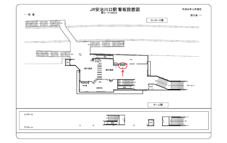 安治川口駅の改札内コンコースにございます広告看板となります。