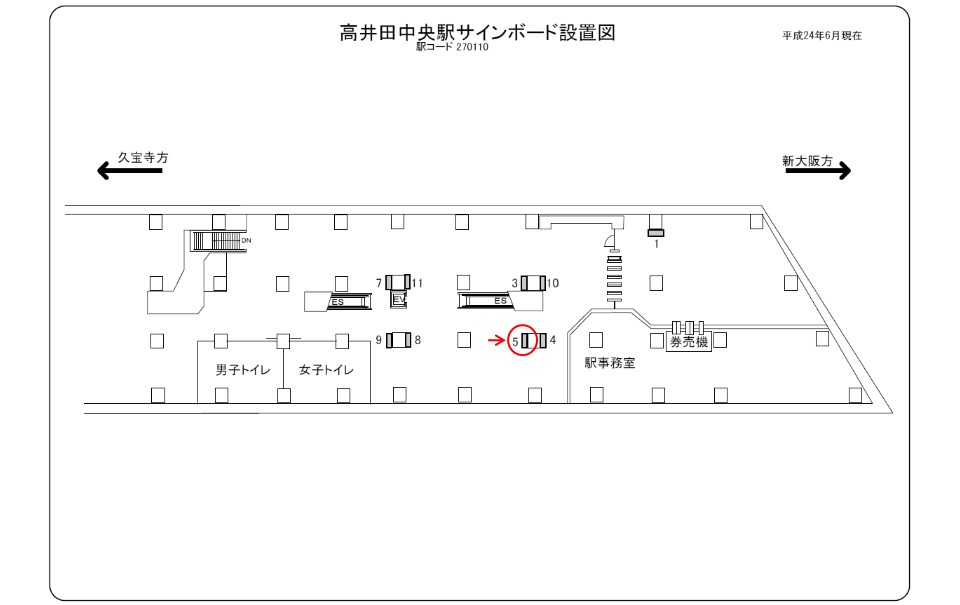 JR高井田中央駅改札内通路柱にございます、電照タイプの看板になります。