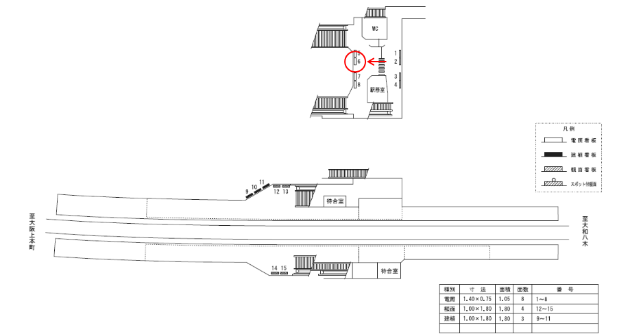 この看板以外にも改札の周辺の看板でしたり、7日間から使えるポスター広告などがあります。