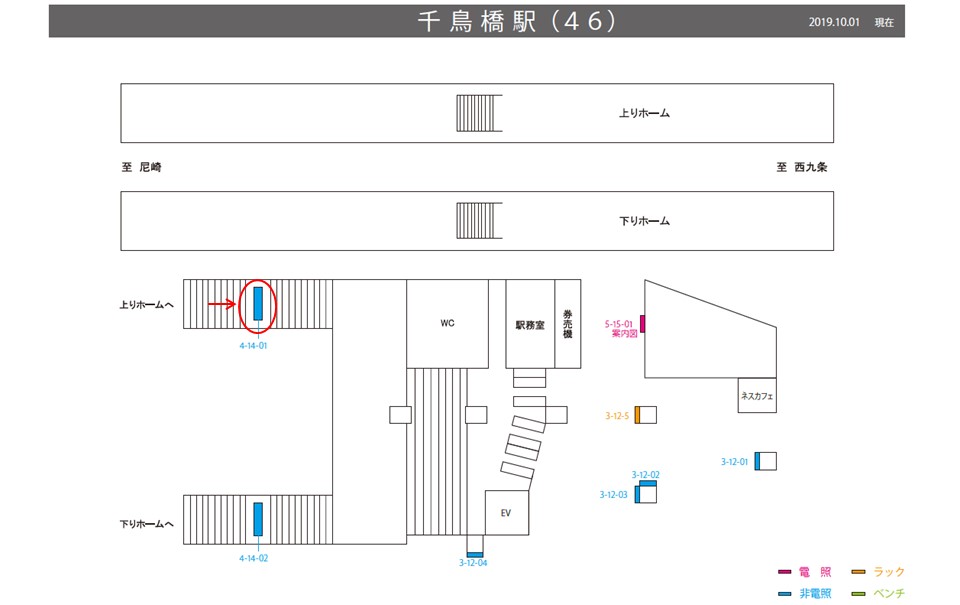 阪神千鳥橋駅ホーム階段見附に設置された非電照看板のご紹介です。