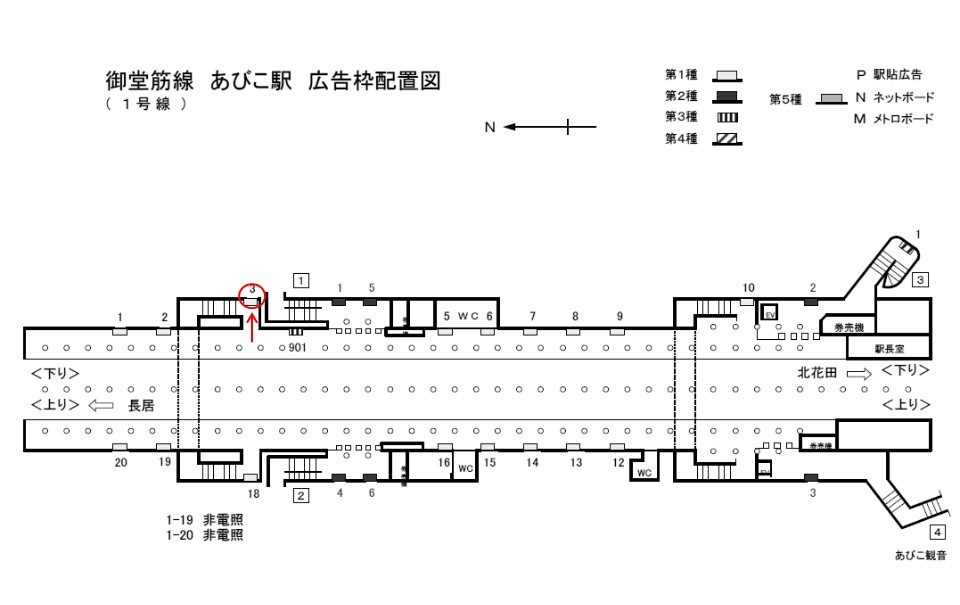 地下鉄あびこ駅、下りホームに掲出された駅広告(駅看板)設備のご紹介です。