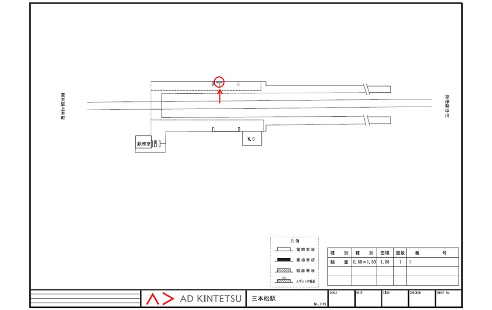 駅看板「近鉄 三本松駅 №1」は近鉄 三本松駅のホームに設置された額面タイプの広告看板です。主に電車を待っている駅利用者に見てもらえます。