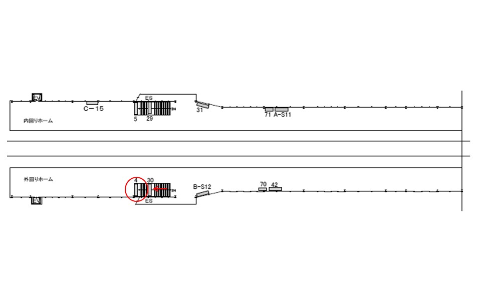 外回りホーム(西九条・大阪方面)から改札へ向かわれる方々に視認されます。