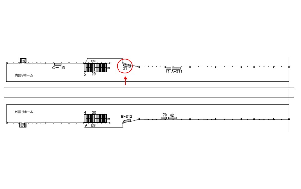 内回りホーム(天王寺・鶴橋方面)にて電車をお待ちの方々に視認されます。