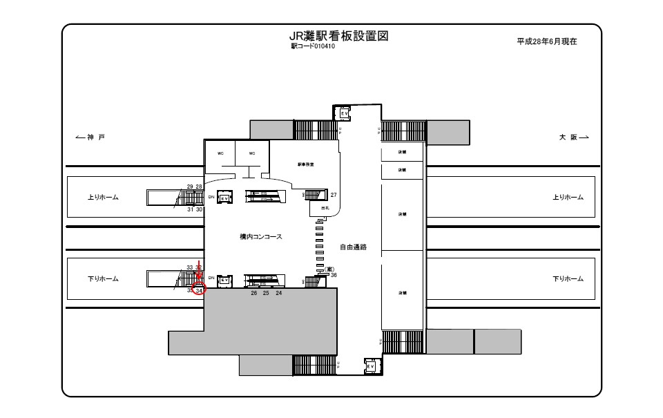 JR神戸線灘駅の階段壁面に掲出された看板になります。