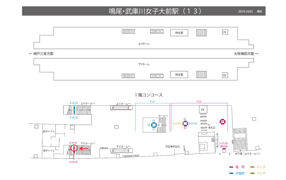 鳴尾・武庫川女子大学前駅の階段見附に掲出する電照タイプの看板となります。