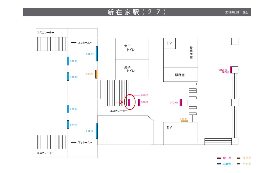 新在家駅の改札内コンコースに掲出する非電照タイプの看板となります。