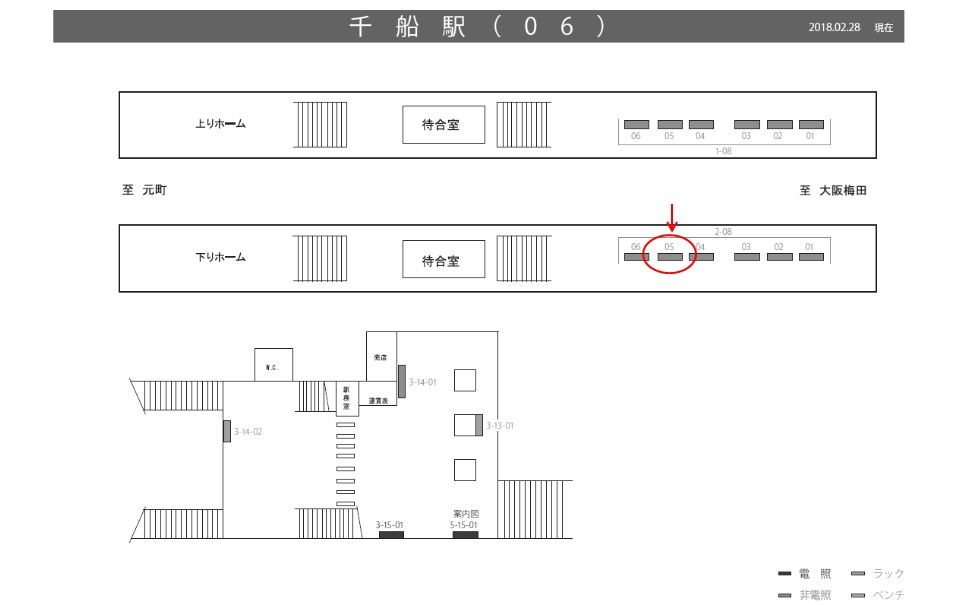 千船駅のホームに掲出する非電照タイプの看板となります。
