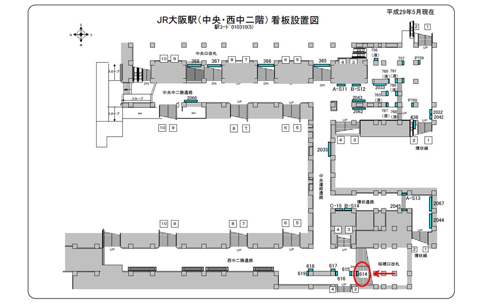JR大阪駅柵内西中二階通路柱に設置された電照タイプの看板です。