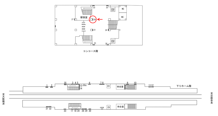 駅構内にある駅看板は「これから電車に乗る方」もしくは「駅を出る方」に見てもらえます。いずれにしても駅を利用するタイミングで広告に接触します。移動中に見てもらえる駅構内の駅看板は、河内花園駅の周辺にある店舗施設の紹介や道案内に利用されています。特に駅の出口付近にある駅看板は、店舗までの距離が近く案内看板に適しています。