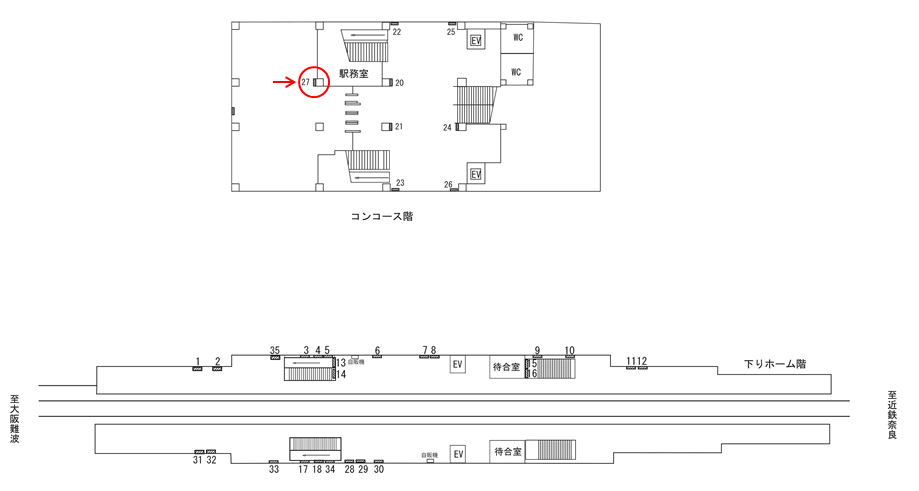 駅構内にある駅看板は「これから電車に乗る方」もしくは「駅を出る方」に見てもらえます。いずれにしても駅を利用するタイミングで広告に接触します。移動中に見てもらえる駅構内の駅看板は、河内花園駅の周辺にある店舗施設の紹介や道案内に利用されています。特に駅の出口付近にある駅看板は、店舗までの距離が近く案内看板に適しています。