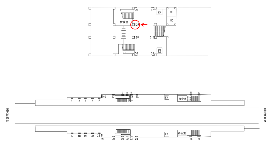 駅構内にある駅看板は「これから電車に乗る方」もしくは「駅を出る方」に見てもらえます。いずれにしても駅を利用するタイミングで広告に接触します。移動中に見てもらえる駅構内の駅看板は、若江岩田駅の周辺にある店舗施設の紹介や道案内に利用されています。特に駅の出口付近にある駅看板は、店舗までの距離が近く案内看板に適しています。