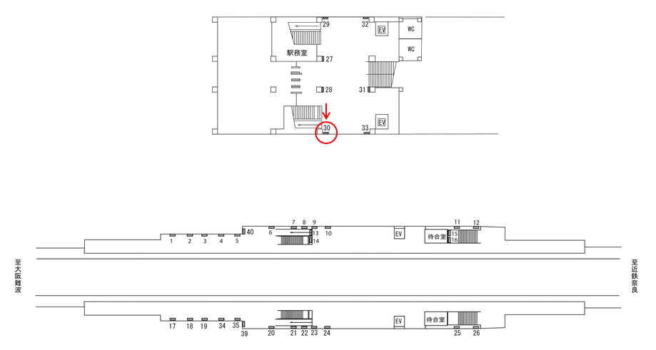 駅構内にある駅看板は「これから電車に乗る方」もしくは「駅を出る方」に見てもらえます。いずれにしても駅を利用するタイミングで広告に接触します。移動中に見てもらえる駅構内の駅看板は、若江岩田駅の周辺にある店舗施設の紹介や道案内に利用されています。特に駅の出口付近にある駅看板は、店舗までの距離が近く案内看板に適しています。