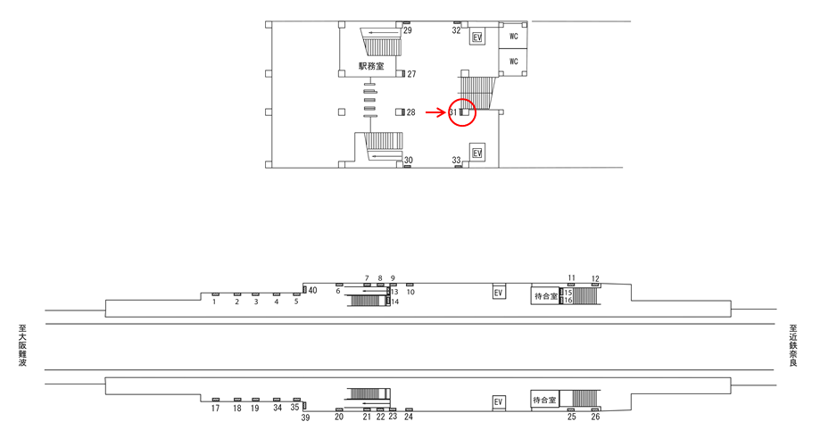 駅構内にある駅看板は「これから電車に乗る方」もしくは「駅を出る方」に見てもらえます。いずれにしても駅を利用するタイミングで広告に接触します。移動中に見てもらえる駅構内の駅看板は、若江岩田駅の周辺にある店舗施設の紹介や道案内に利用されています。特に駅の出口付近にある駅看板は、店舗までの距離が近く案内看板に適しています。