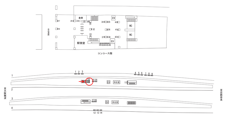 近鉄 東花園駅の近鉄奈良線ホームのホーム階段正面にある駅看板です。