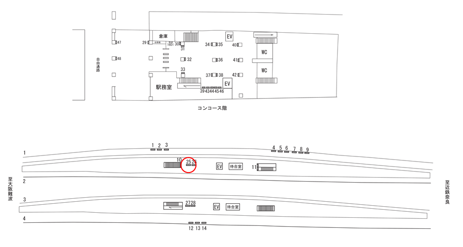 駅看板「近鉄 東花園駅 №25」は近鉄 東花園駅の近鉄奈良線 近鉄奈良方面ホームにある看板です。