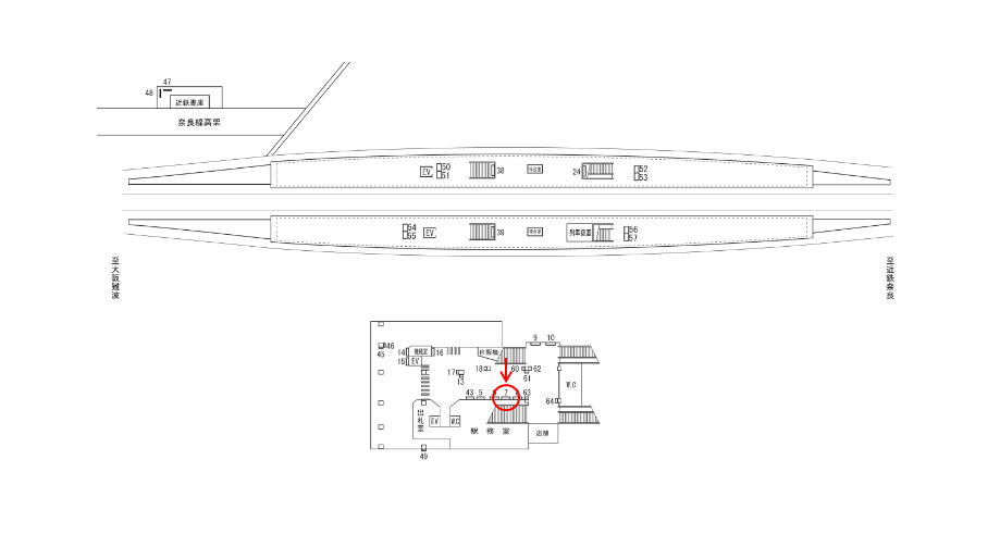 駅構内にある駅看板は「これから電車に乗る方」もしくは「駅を出る方」に見てもらえます。いずれにしても駅を利用するタイミングで広告に接触します。移動中に見てもらえる駅構内の駅看板は、八戸ノ里駅の周辺にある店舗施設の紹介や道案内に利用されています。特に駅の出口付近にある駅看板は、店舗までの距離が近く案内看板に適しています。