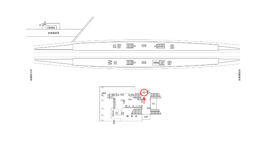 駅構内にある駅看板は「これから電車に乗る方」もしくは「駅を出る方」に見てもらえます。いずれにしても駅を利用するタイミングで広告に接触します。移動中に見てもらえる駅構内の駅看板は、八戸ノ里駅の周辺にある店舗施設の紹介や道案内に利用されています。特に駅の出口付近にある駅看板は、店舗までの距離が近く案内看板に適しています。