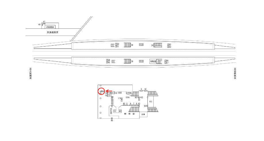 駅構内にある駅看板は「これから電車に乗る方」もしくは「駅を出る方」に見てもらえます。いずれにしても駅を利用するタイミングで広告に接触します。移動中に見てもらえる駅構内の駅看板は、八戸ノ里駅の周辺にある店舗施設の紹介や道案内に利用されています。特に駅の出口付近にある駅看板は、店舗までの距離が近く案内看板に適しています。
