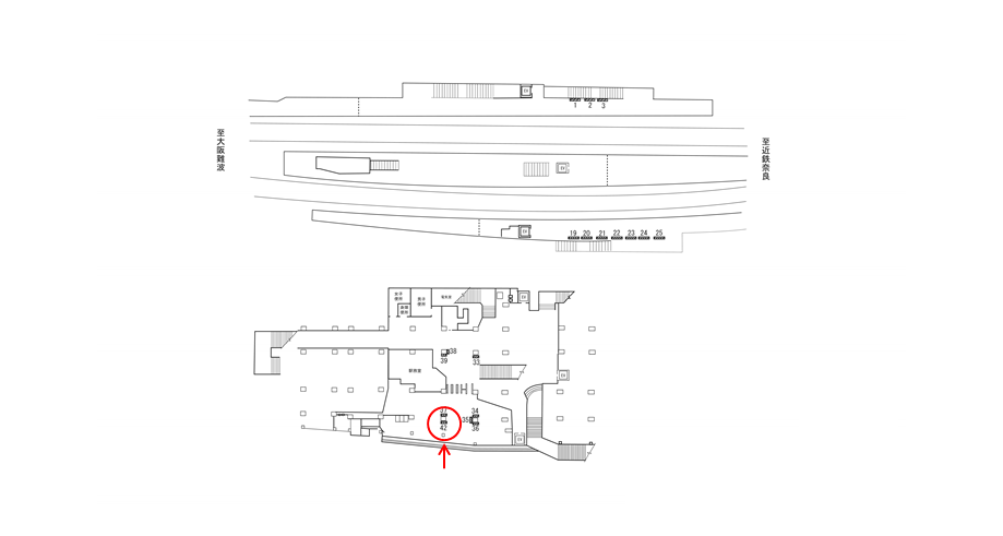 駅構内にある駅看板は「これから電車に乗る方」もしくは「駅を出る方」に見てもらえます。いずれにしても駅を利用するタイミングで広告に接触します。移動中に見てもらえる駅構内の駅看板は、今里駅の周辺にある店舗施設の紹介や道案内に利用されています。特に駅の出口付近にある駅看板は、店舗までの距離が近く案内看板に適しています。