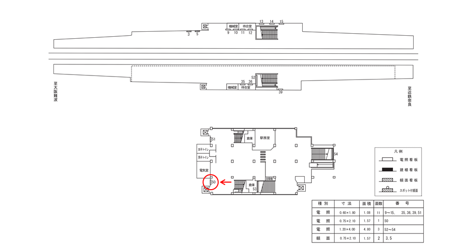 駅看板「近鉄 河内永和駅 №50」は近鉄 河内永和駅の改札内コンコースにある電飾看板です。