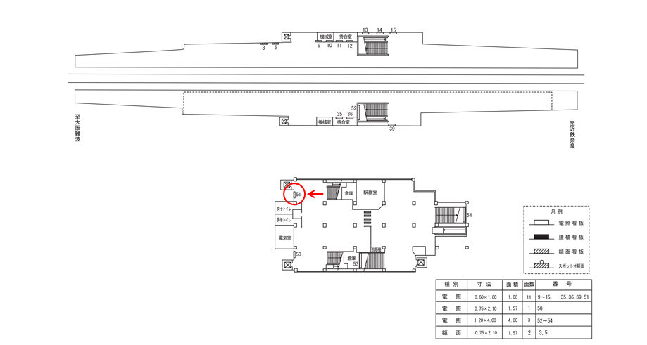 駅看板「近鉄 河内永和駅 №51」は近鉄 河内永和駅の改札内コンコースにある電飾看板です。階段・エスカレーターの前に設置されています。主に近鉄奈良線 近鉄奈良方面ホームを利用する方に見てもらえます。