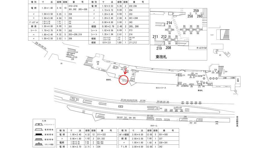 ○№214 改札内コンコース(ホーム階段正面 東改札口) |