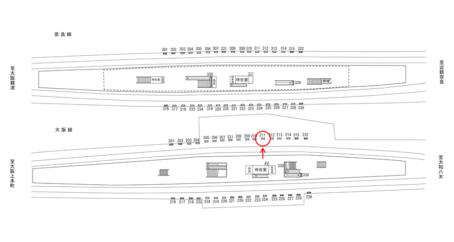 ○№210 線路前(近鉄大阪線 河内国分・大和八木・名古屋方面・伊勢志摩方面) |