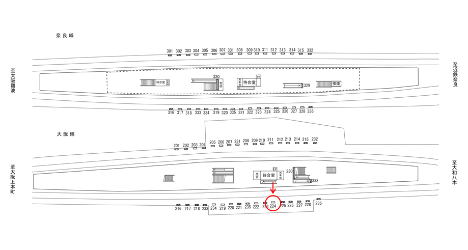 ○№324 線路前(近鉄奈良線 大阪上本町・大阪難波・尼崎・神戸三宮方面) |