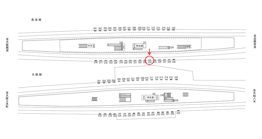 ○№323 線路前(近鉄奈良線 大阪上本町・大阪難波・尼崎・神戸三宮方面) |