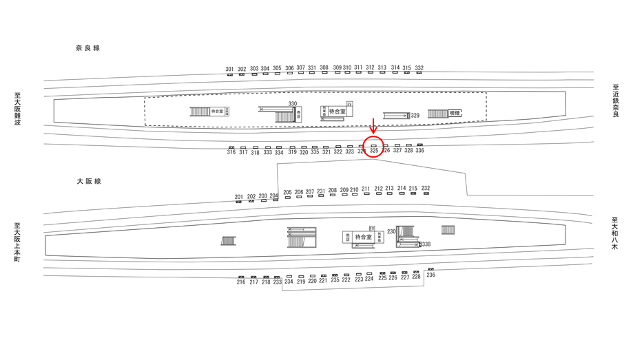 ○№323 線路前(近鉄奈良線 大阪上本町・大阪難波・尼崎・神戸三宮方面) |