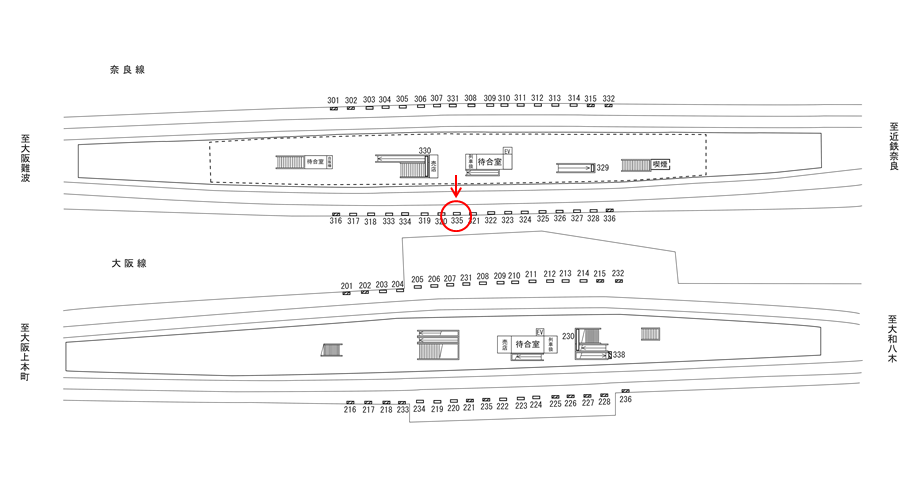 ○№336 線路前(近鉄奈良線 大阪上本町・大阪難波・尼崎・神戸三宮方面) |