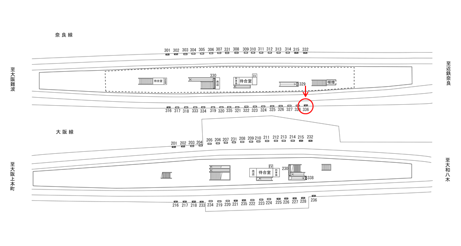 ○№334 線路前(近鉄奈良線 大阪上本町・大阪難波・尼崎・神戸三宮方面) |