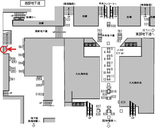 四つ橋線、阪神電車への乗り換え、西梅田・堂島エリア各オフィスビルの地下入り口への導線となる桜橋エリアに設置されたビジョン広告になります。平日朝8時台の人の流動数は中央コンコースを上回ります。