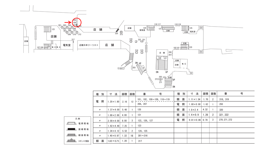○№121 改札内コンコース(ホームエスカレーター正面 地下中央改札口) |