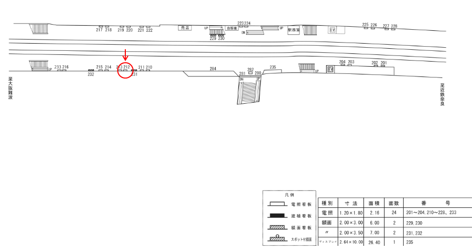 ○№232 ホーム上(近鉄難波線・奈良線 大阪難波・神戸三宮方面ホーム) |