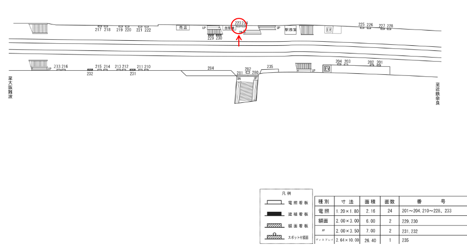 ○№224 ホーム上(近鉄難波線・奈良線 近鉄奈良・近鉄名古屋・賢島方面ホーム) |