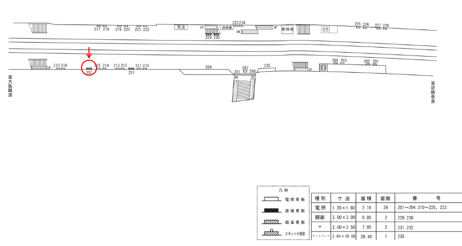 ○№228 ホーム上(近鉄難波線・奈良線 近鉄奈良・近鉄名古屋・賢島方面ホーム) |