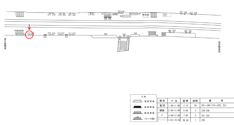 ○№232 ホーム上(近鉄難波線・奈良線 大阪難波・神戸三宮方面ホーム) |