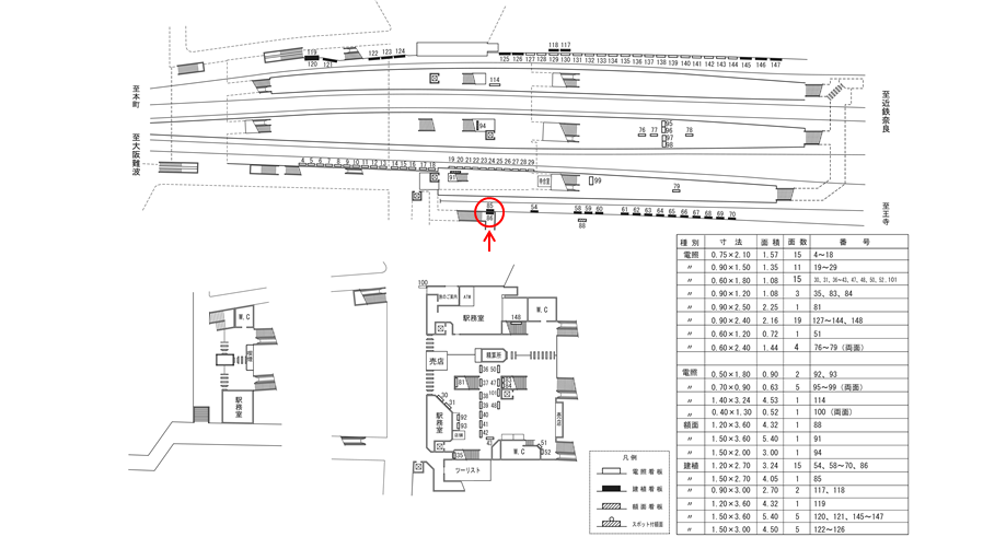 この看板以外にも改札の周辺の看板でしたり、7日間から使えるポスター広告などがあります。