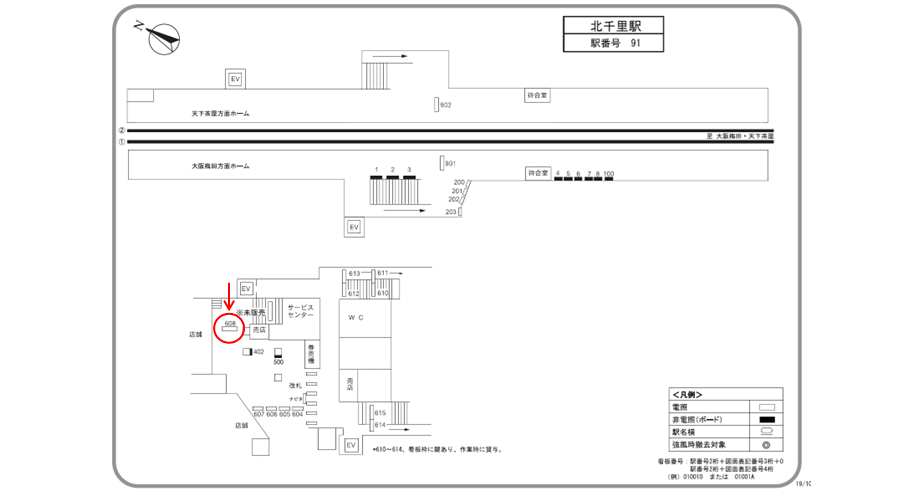 北千里駅の改札内コンコースにある広告看板です。ホームと改札を行き来する人に見てもらえます。