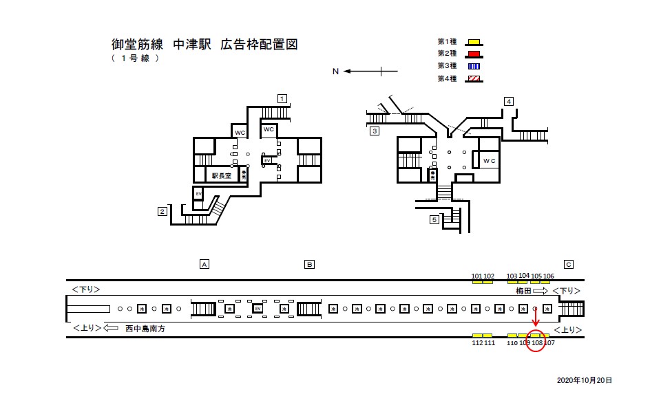 御堂筋線中津駅のホームに掲出された駅看板のご紹介です。