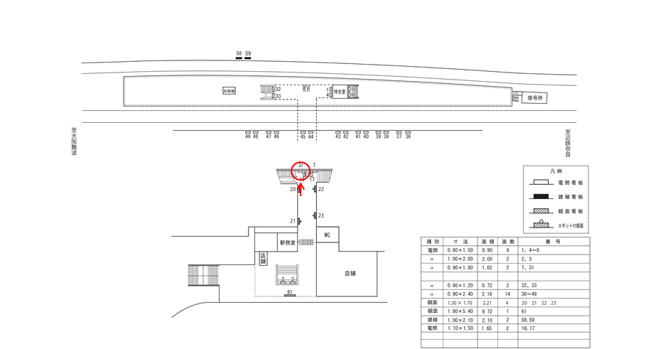 駅看板「近鉄 東生駒駅 №31」は近鉄 東生駒駅の改札内コンコースにある電飾看板です。