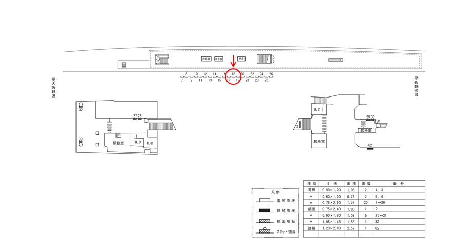 駅看板「近鉄 富雄駅 №18」は近鉄 富雄駅の近鉄奈良線 大阪難波・尼崎方面の線路前にある電飾看板です。