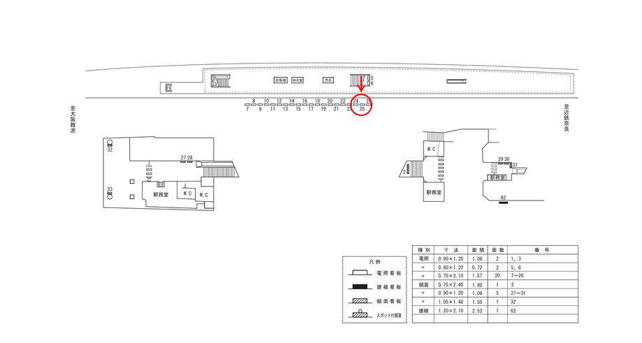 駅看板「近鉄 富雄駅 №25」は近鉄 富雄駅の近鉄奈良線 大阪難波・尼崎方面の線路前にある電飾看板です。
