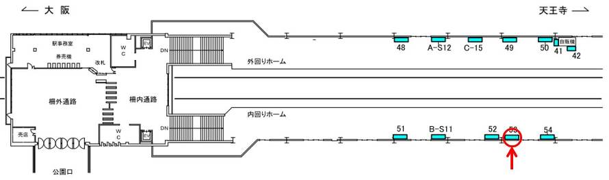 駅看板「JR 大阪城公園駅 №53」