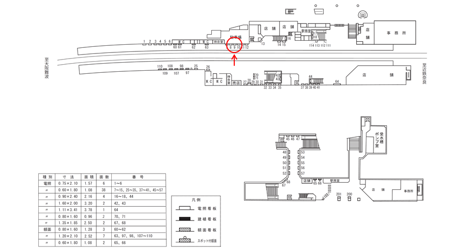○№64 ホーム上(近鉄奈良線 大阪難波・神戸三宮方面ホーム) |