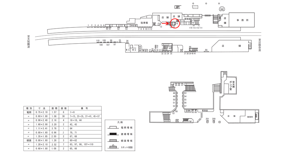 ○№17 ホーム上(ホーム階段正面 近鉄奈良線ホーム) |