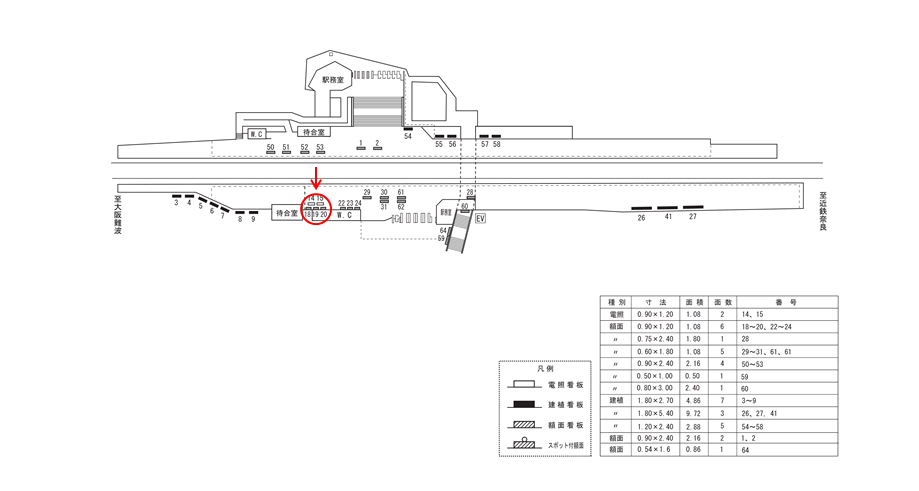 ○№58 ホーム上(近鉄奈良線 近鉄奈良方面ホーム) |