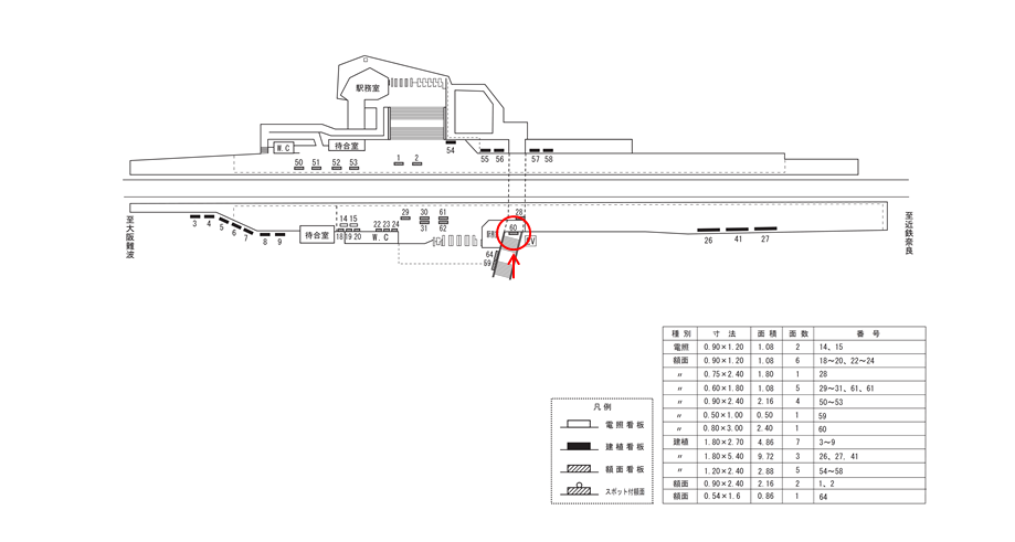 ○№58 ホーム上(近鉄奈良線 近鉄奈良方面ホーム) |